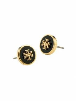 Tory Burch Earring Kira 18K-Gold-Plated Enamel Logo Stud