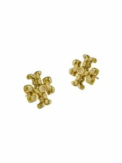 Tory Burch Earring Goldtone Stud Logo Pavé