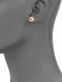 Tory Burch Earring Logo Crystal-Pearl Stud Rose Goldtone