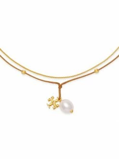Tory Burch Kira Pendant Necklace Logo 18K-Gold-Plated Enamel