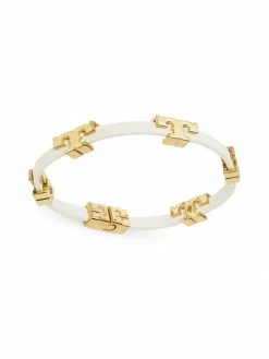 Tory Burch Bracelet Serif-T Leather Goldtone Stackable