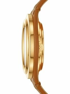 Tory Burch Tory Goldtone Watch Stainless Steel Leather Strap