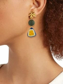 Tory Burch Earring Resin Goldtone Roxanne Double-Drop