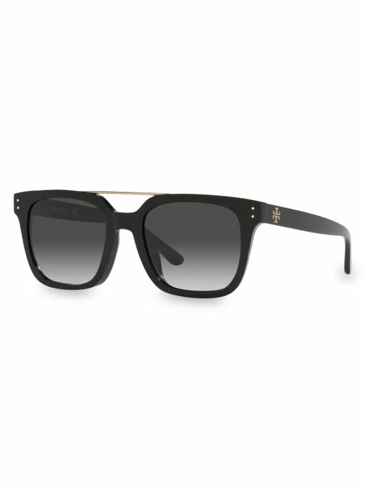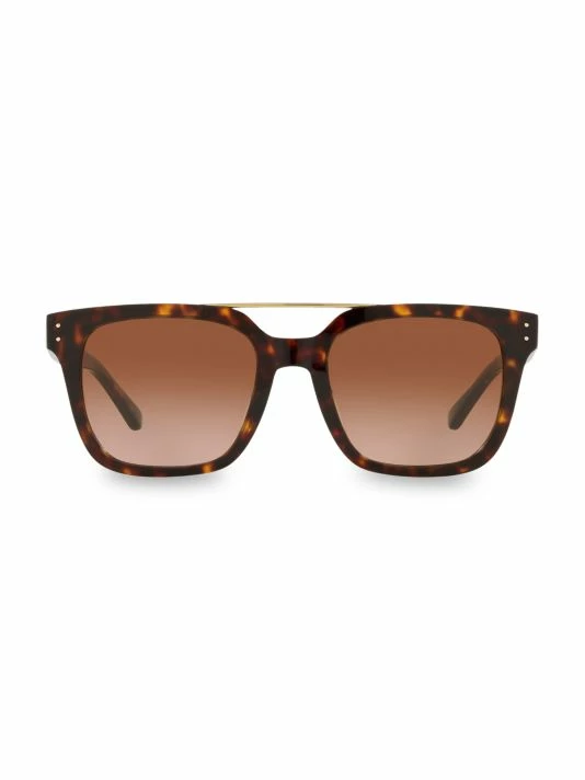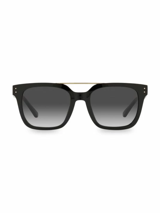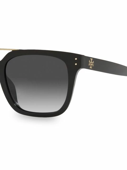 Polished rectangular sunglasses featuring a thin metal brow bar, finished with metal dots at corners and double T-logo at temples.