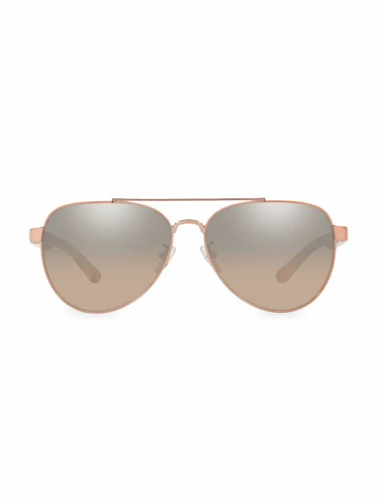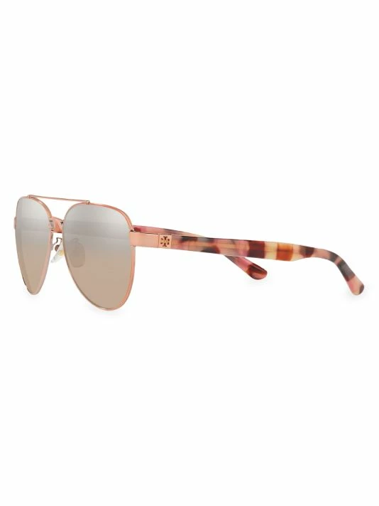 Striped temples with subtle logo embellishment add style to sleek metal aviators.