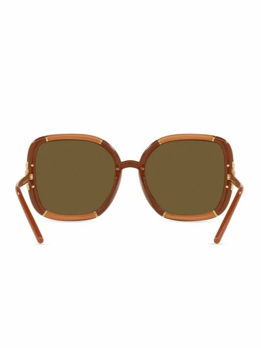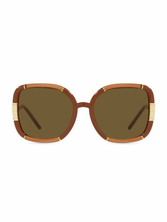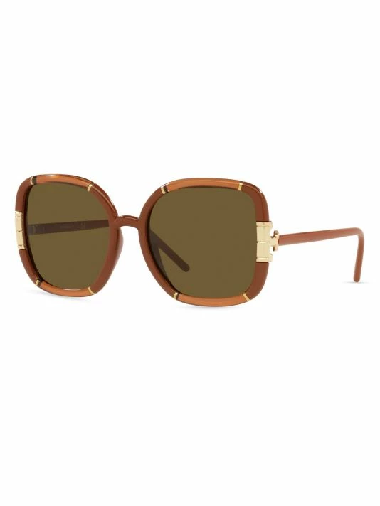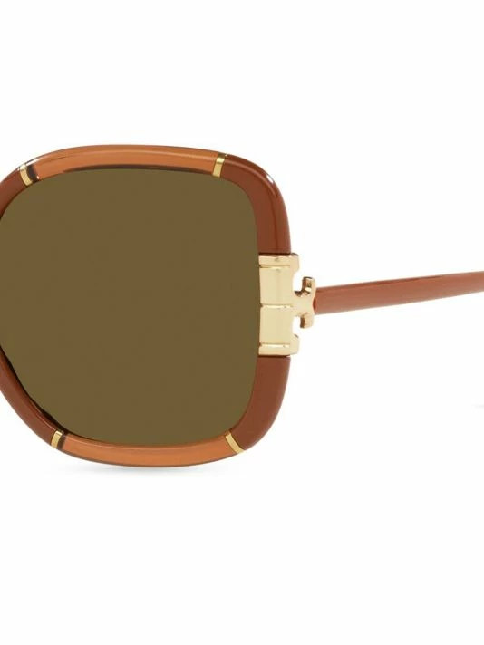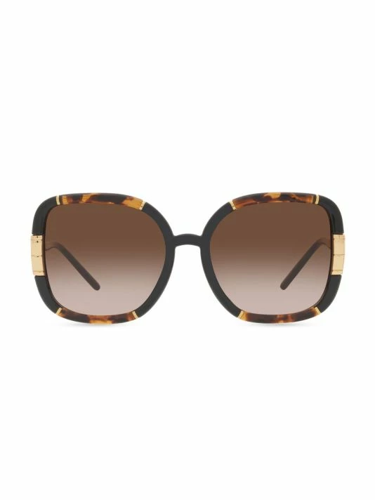 Square frames styled with gradient lenses and a goldtone Tory Burch signature at the temples.