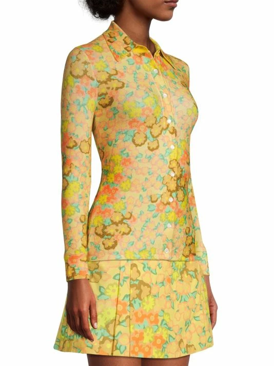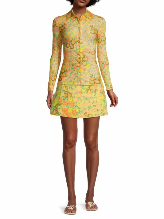 Crafted of knit fabric, Tory Burch’s button-down shirt is decorated in a vibrant Blossom print.