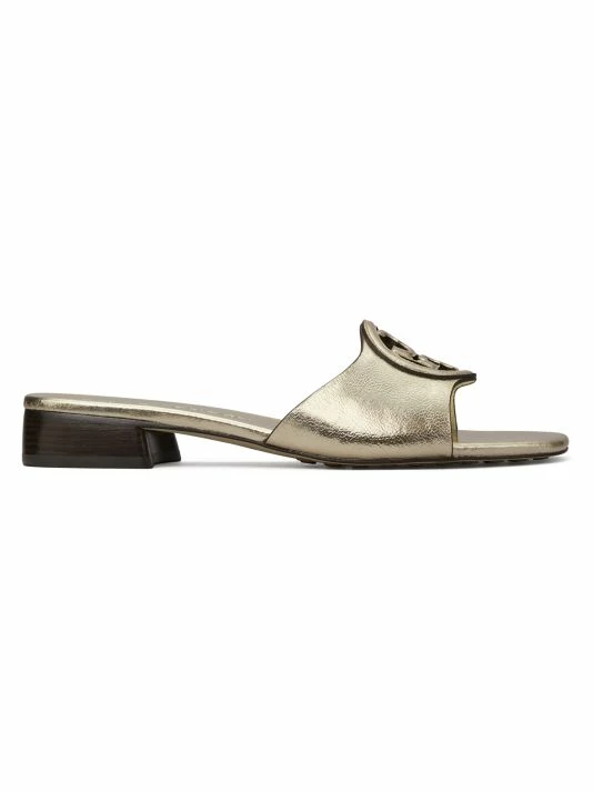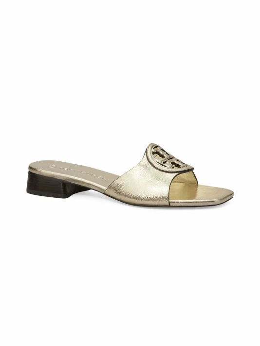 The Bombé Miller slide sandals by Tory Burch have been reinvented for utmost comfort. Crafted of metallic leather, this pair is detailed with the label’s signature Double-T logo upper, cushioned footbed, and stacked heel.