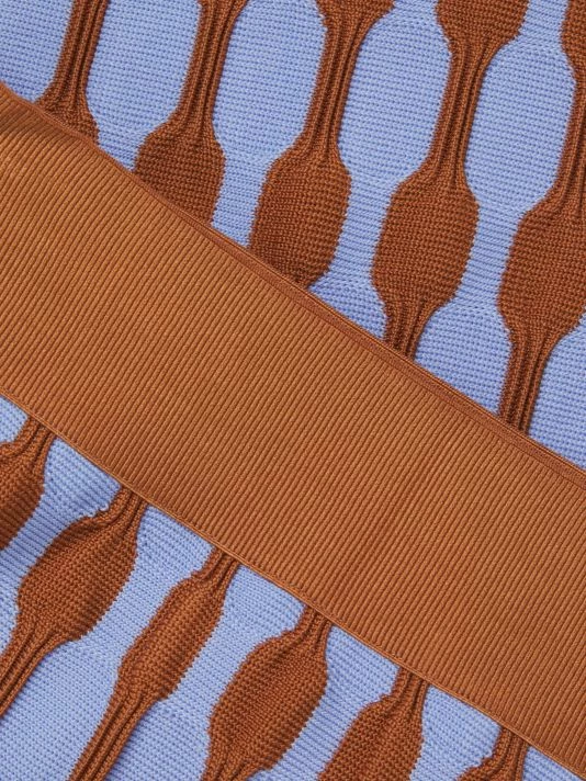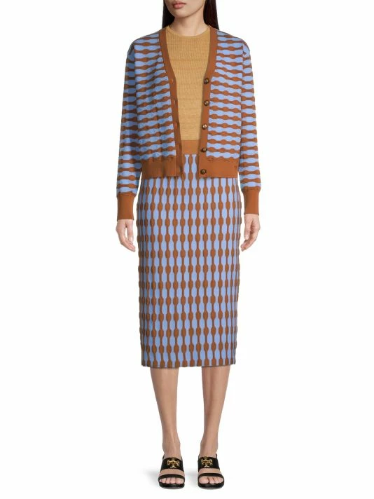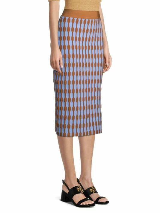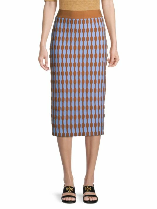 Detailed with textured vertical stripes, Tory Burch’s Bubble Stripe knit midi-skirt features a high-waisted, formfitting silhouette.
