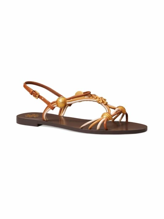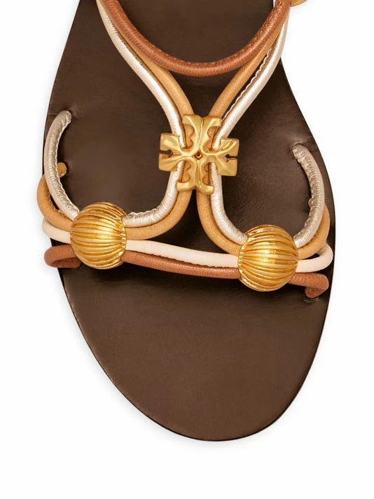Featuring tubular leather vamp straps, Tory Burch’s Capri sandals are adorned with decorative beads and the signature Double T logo charm. This flat pair is fastened with a dainty ankle strap.