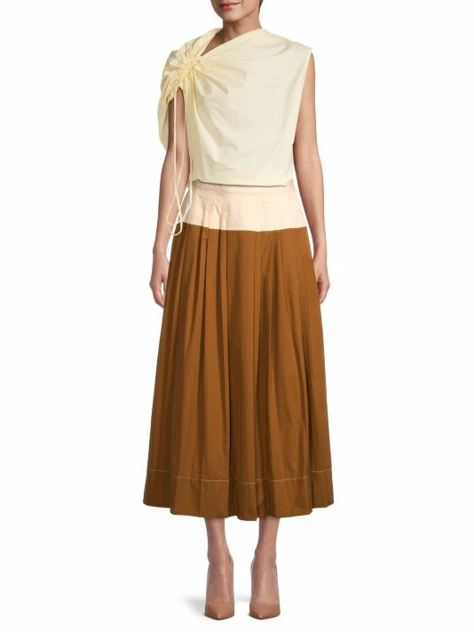 Crafted of cotton poplin, this flared Tory Burch midi skirt features a two-tone design.