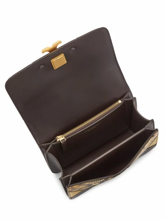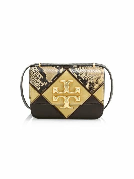Diamond quilted faux python and smooth leather panels create this shoulder bag, highlighted with signature double T logo plaque.