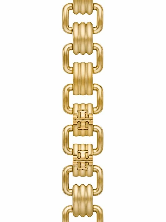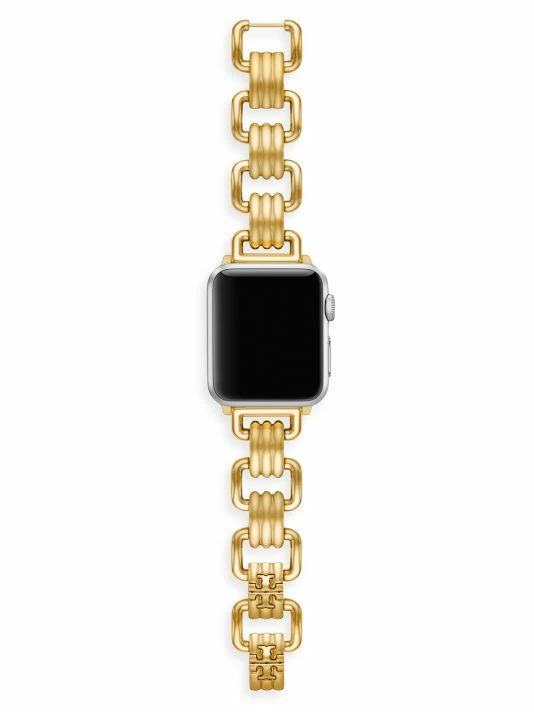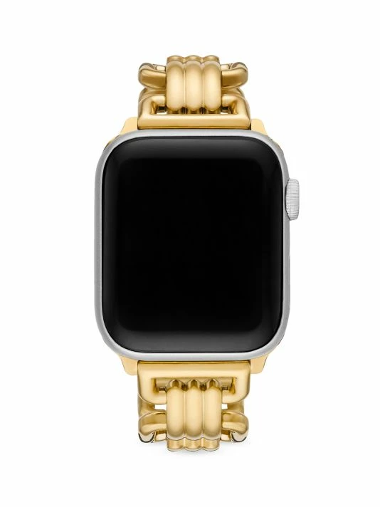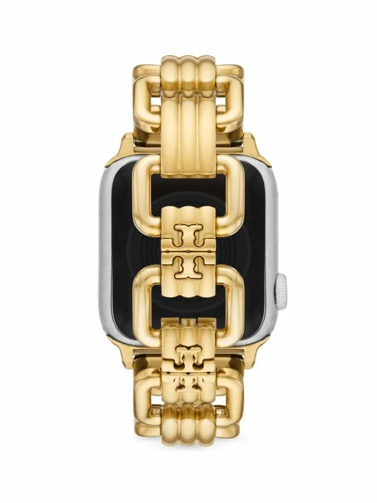 From the Eleanor Collection. Tory Burch’s Eleanor Apple Watch® bracelet is crafted of goldtone stainless steel. Secured with a deployant buckle, this elegant accessory captures the label’s modern yet refined aesthetic.