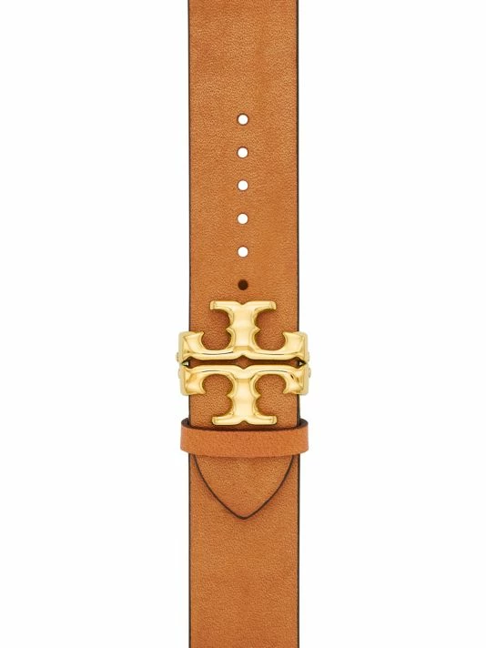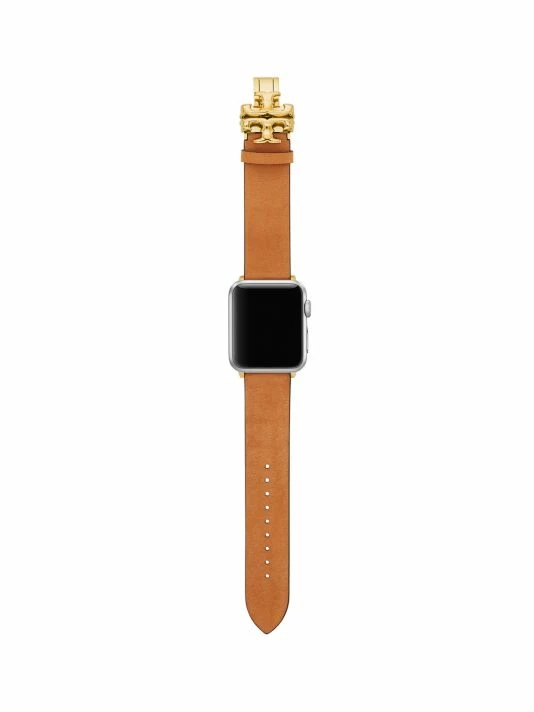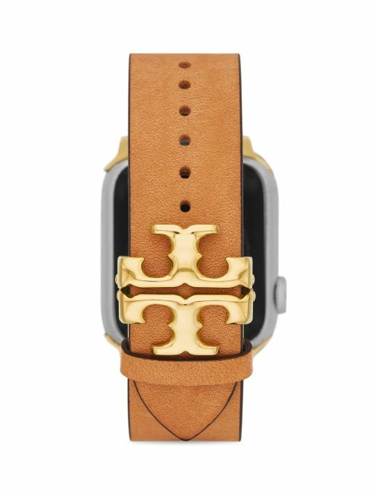 From the Eleanor Collection. Tory Burch’s Eleanor Apple Watch® strap is crafted of luxe brown leather. This chic accessory secures with a goldtone single-prong buckle sculpted in the shape of the label’s signature Double T logo.