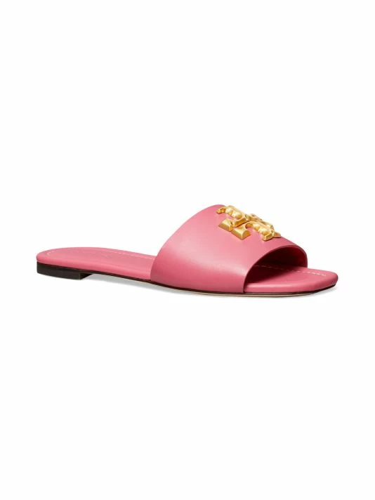 Punctuated with signature Double T logo hardware, Tory Burch’s Eleanor slides are crafted of rich leather.