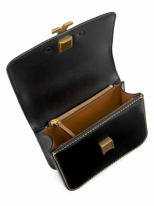 Patent leather with contrast stitching and hand-painted edges emphasize the clean lines on this convertible shoulder bag.