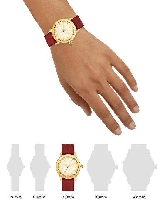 From the Gigi Collection. Understated and classic in design, this goldtone and leather-strap watch is defined by a debossed double-T logo on the dial. Includes five interchangeable top rings to change up your look.