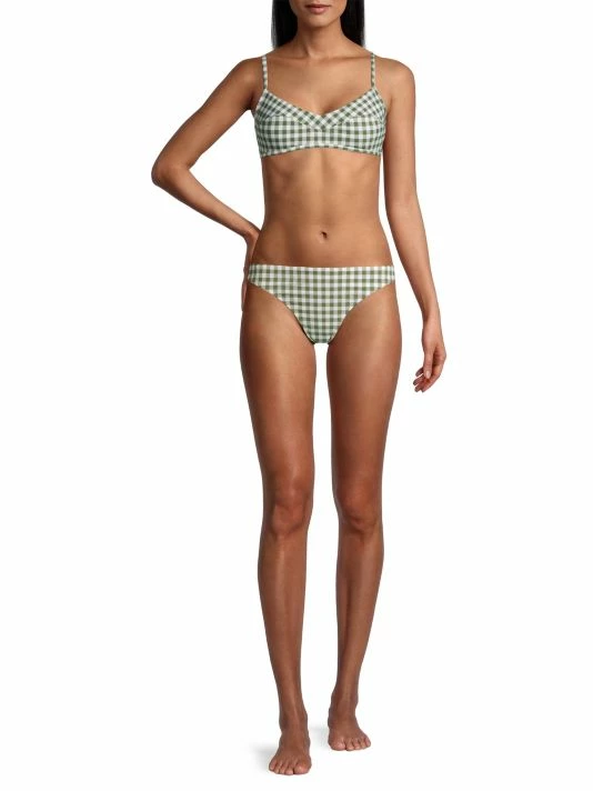 Made from world-reknownSensitive Fabrics® by Eurojersey materials, the fabric of this gingham hipster bikini bottom features move-with-you four-way stretch and SPF 50 sun protection.
