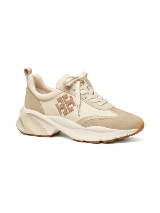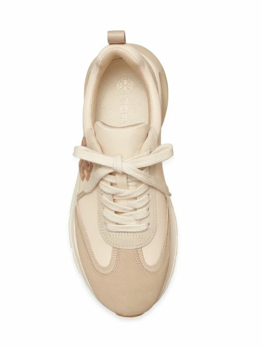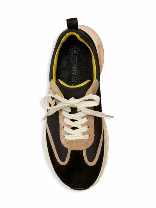 These sporty mixed media trainers flaunt the signature double T-logo patch at side wall.