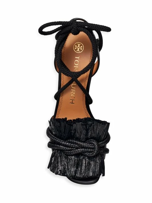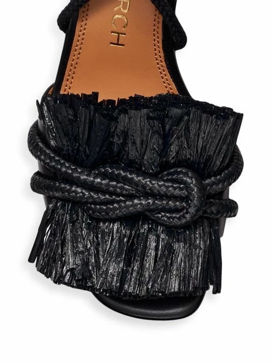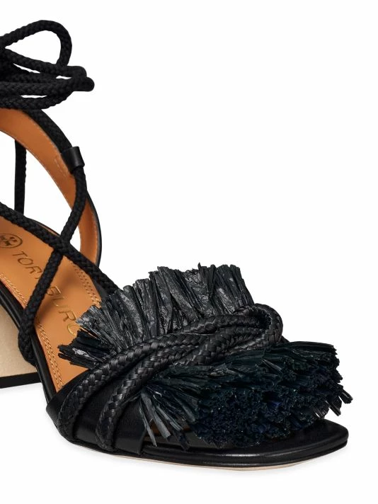 Crafted of bovine leather, these strappy sandals are complete with a gathered three-dimensional embellishment and self-tie rope ankle straps.