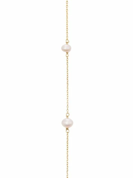 Tory Burch’s 18K-gold-plated Kira necklace is embellished with petite logo charms and luminous white pearls.