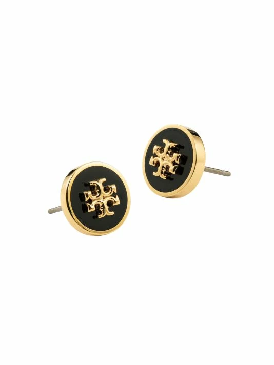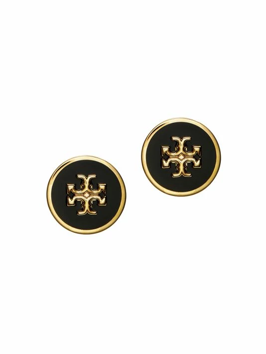 Crafted of 18K-gold-plated metal, Tory Burch’s round logo stud earrings are inlaid with white enamel
