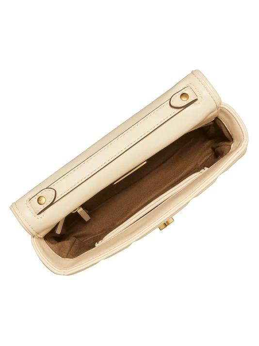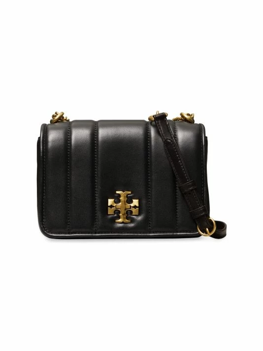 From the Kira Collection. Crafted of rich quilted leather, Tory Burch’s shoulder bag is highlighted with the signature Double T logo hardware. This piece is accompanied by a sleek leather and chain strap.