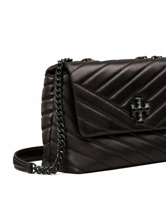 Punctuated with tonal Double T logo hardware, Tory Burch’s Kira shoulder bag is made of soft chevron-quilted leather. A sliding chain strap accompanies this piece to be doubled over the shoulder or worn across the body.
