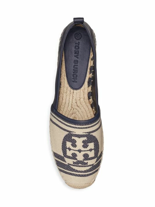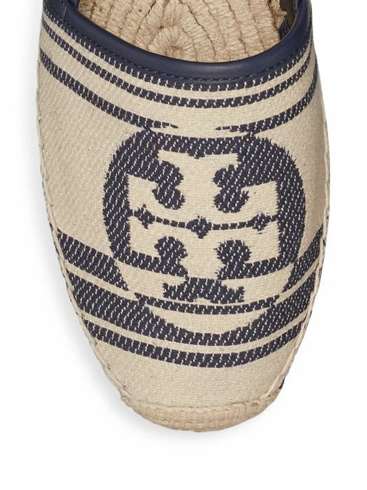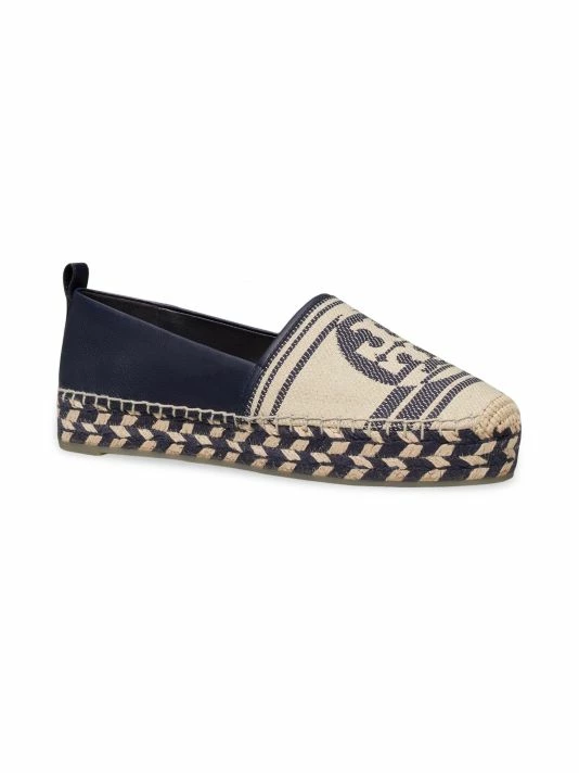 Set on a two-tone platformed sole, Tory Burch’s espadrilles feature a striped canvas vamp with the woven Double T logo.