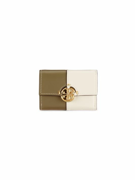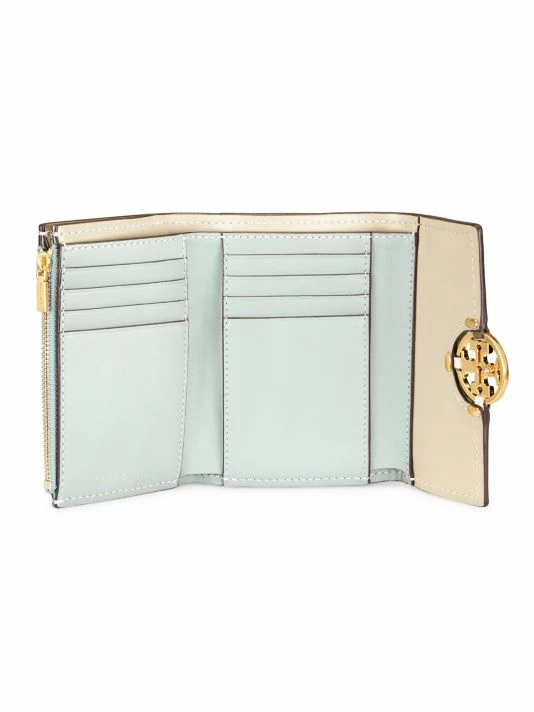 From the Miller Collection. Highlighted with signature Double T logo hardware, Tory Burch’s wallet is crafted of colorblocked leather.