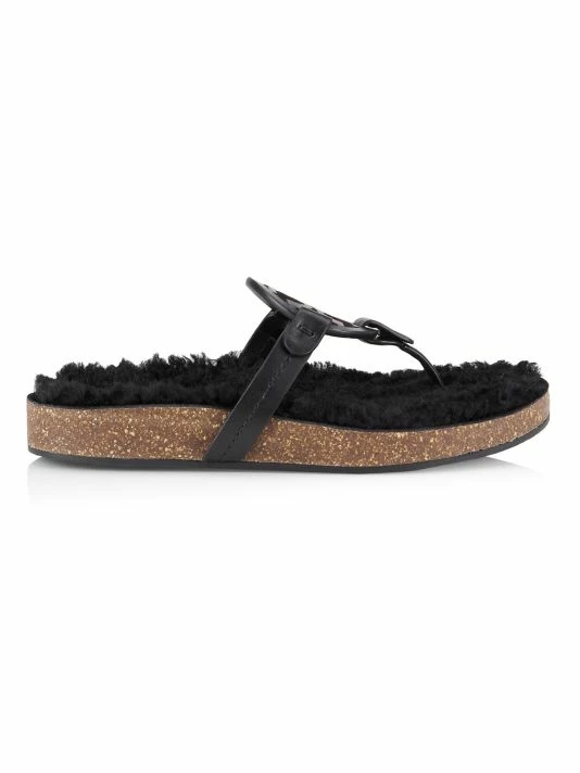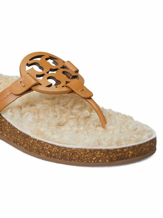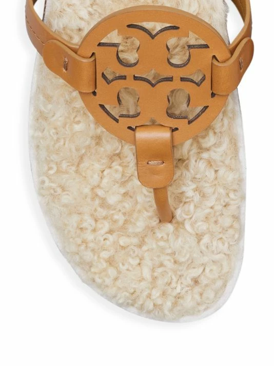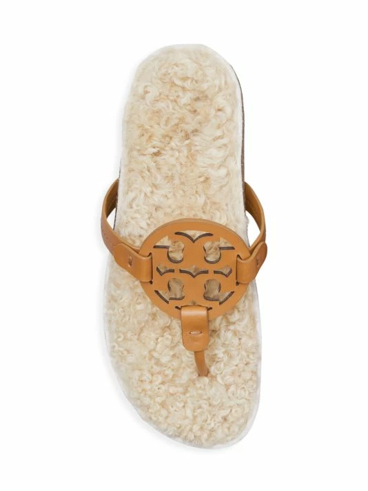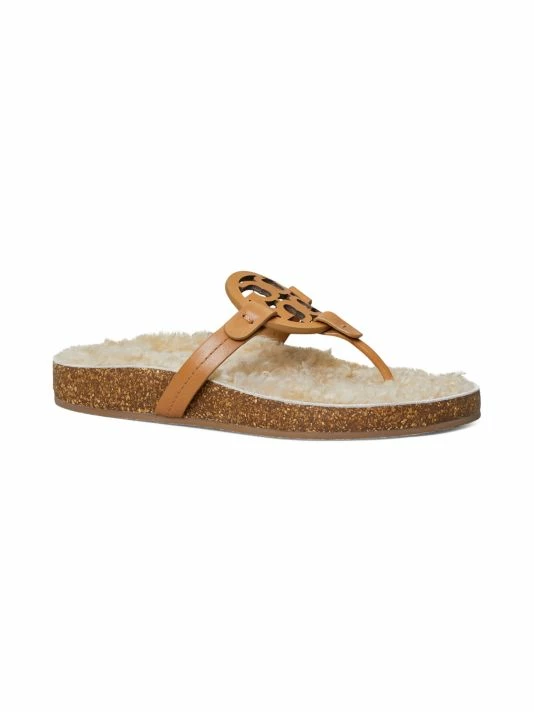 Traditional Tory Burch sandal style with an ultra-soft shearling footbed for extra comfort.