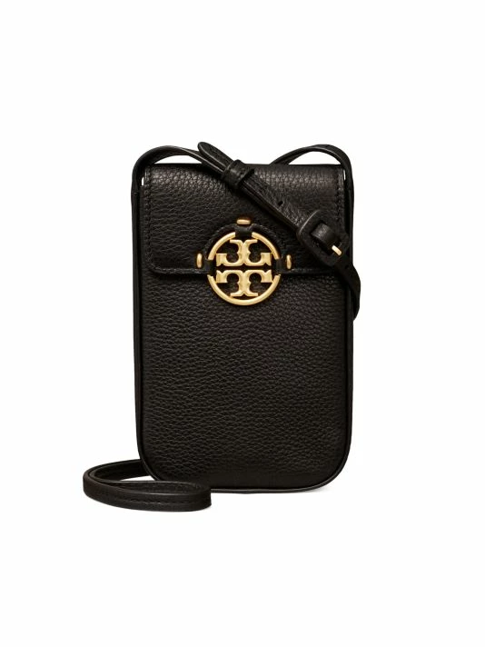 Rendered in grained leather, this crossbody phone holder is highlighted with signature double-T plaque.
