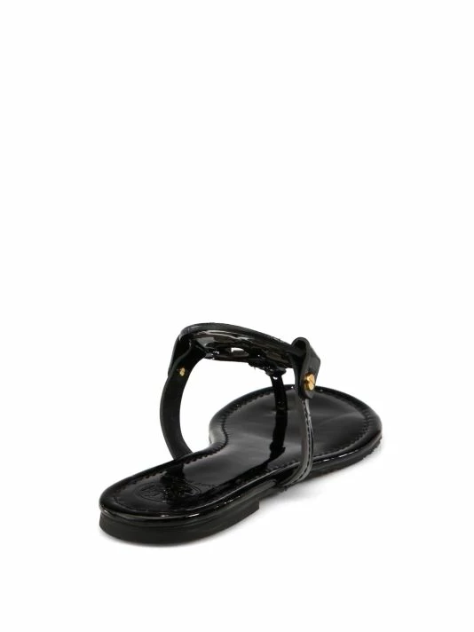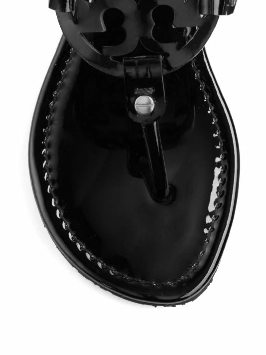 - Patent thong sandal with distinguished logo vamp