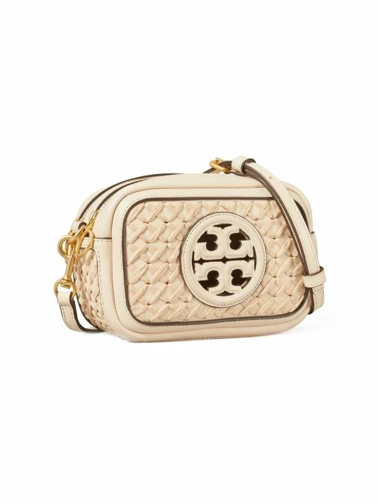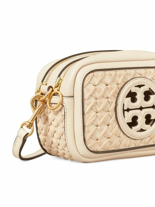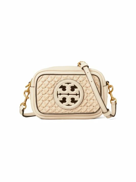 Crafted of rich leather, Tory Burch’s Perry Bombé bag flaunts a woven-raffia construction. This crossbody piece is finished with the cut-out Double T logo.