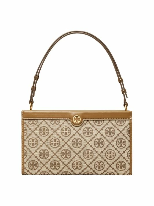 Signature monogram framed with a smooth leather trim creates this pouchette, highlighted with logo hardware.
