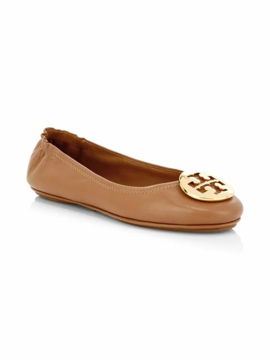 Boasting a smooth leather finish, these ballet flats are iconic in their logo design.
