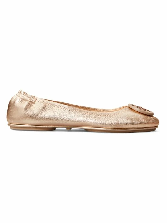 Striking in a metallic sheen, these leather ballet flats exude refinement.