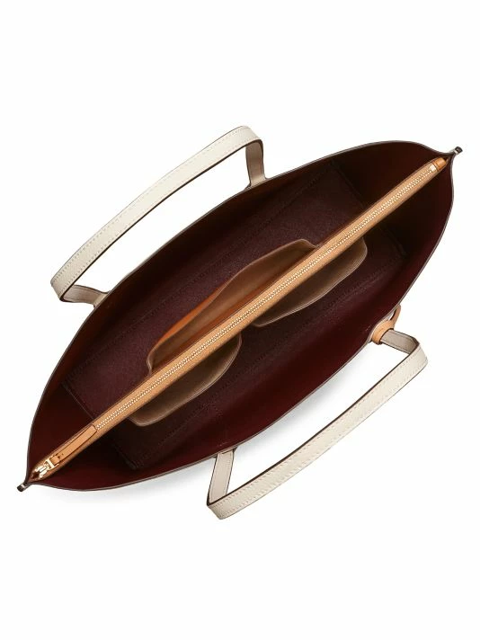 With three spacious compartments and interior slip pockets for organization, this leather tote is a chich and convenient bag for everyday.