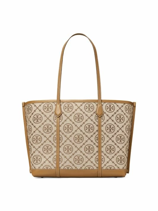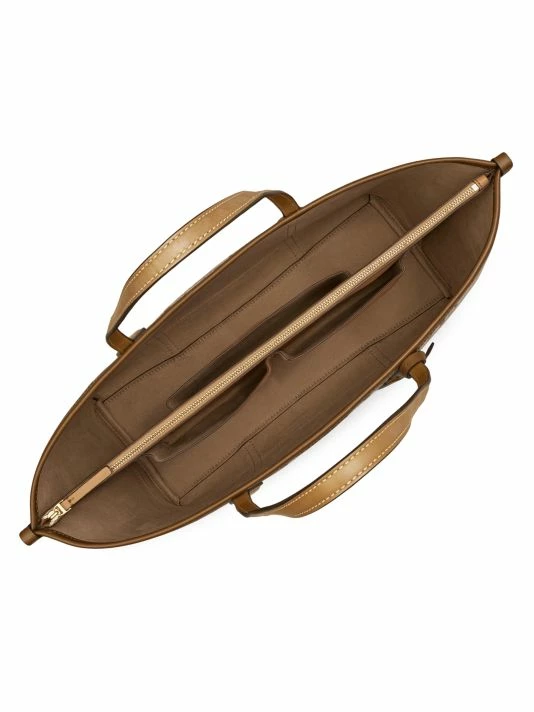 Signature monogram framed with a smooth leather trim creates this spacious tote, highlighted with logo hardware.