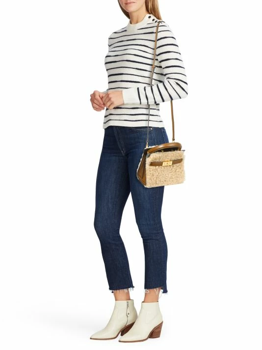 Crafted of a blend of rich leather and plush shearling, this slouchy satchel exudes timeless charm.