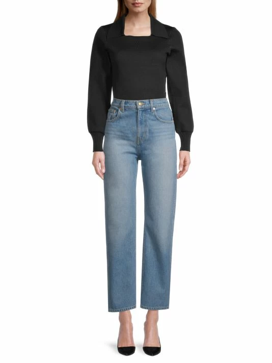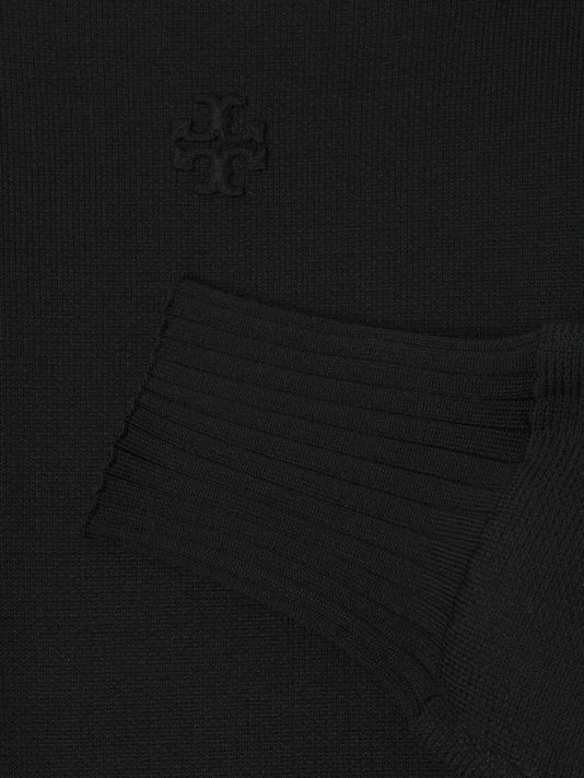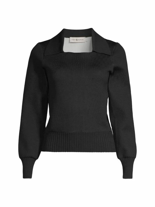 This Tory Burch polo sweater is designed with puffed sleeves and a ribbed trim.