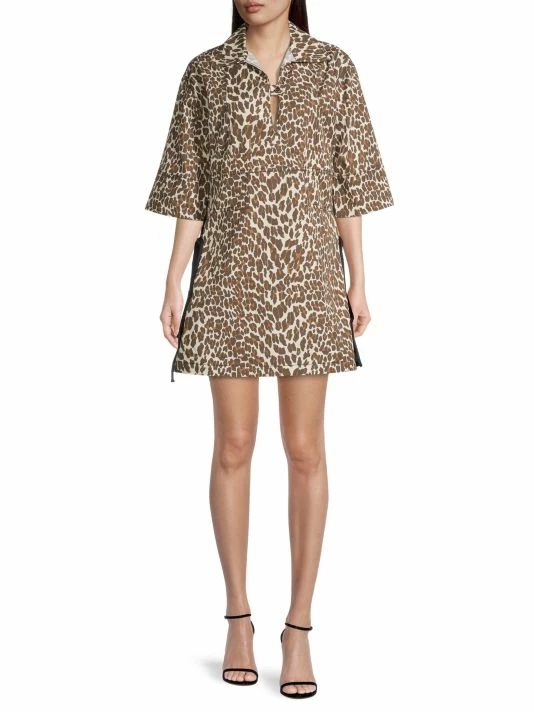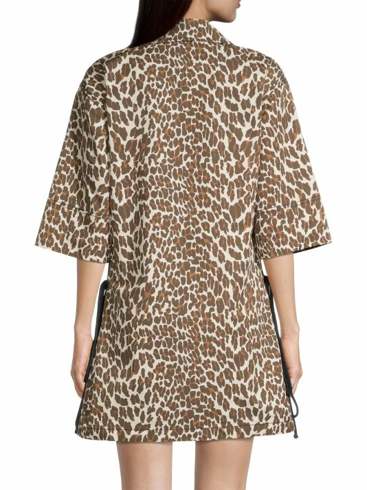 Cut in a boxy silhouette, this short-sleeve poplin minidress features playful leopard print and adjustable drawstring sides.