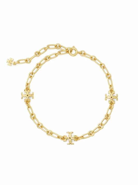 This 18K gold-plated bracelet features a delicate and sculptural chain, accented with the label’s Double-T logo.