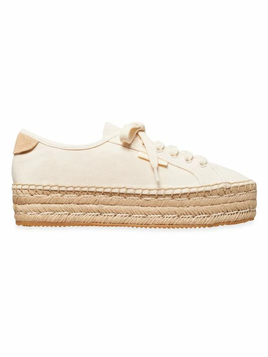 Anchored by a platformed espadrille sole, Tory Burch’s Seaside oxfords are crafted of durable canvas with contrast suede counters. This low-top pair is finished with a logo tag at the sidewall.