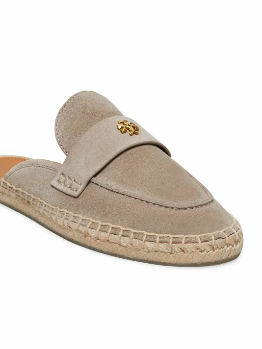 Set on an espadrille sole, Tory Burch’s Seaside mules are crafted of rich suede adorned with the signature Double T logo charm.