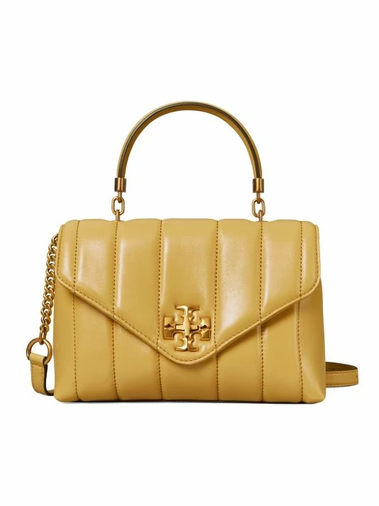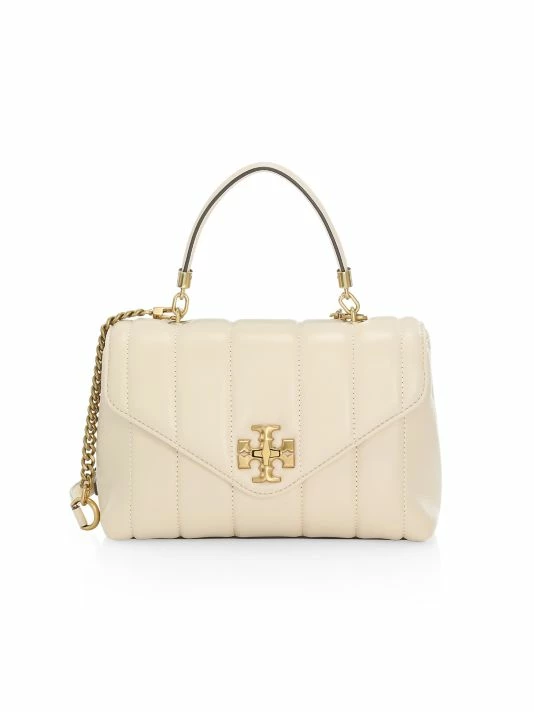 Quilted smooth leather creates this satchel, highlighted with signature double T plaque for a signature look.