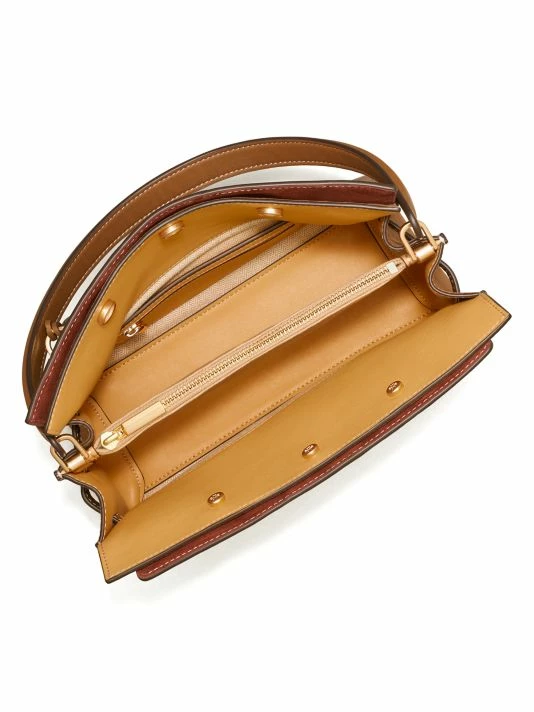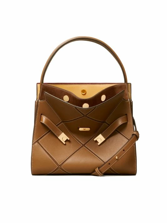 Tory Burch’s Lee Radziwill Collection is named after the free-spirited former princess. Expertly crafted in diamond-quilted leather and supple suede, this double bag features a belted strap and T-logo buckle.