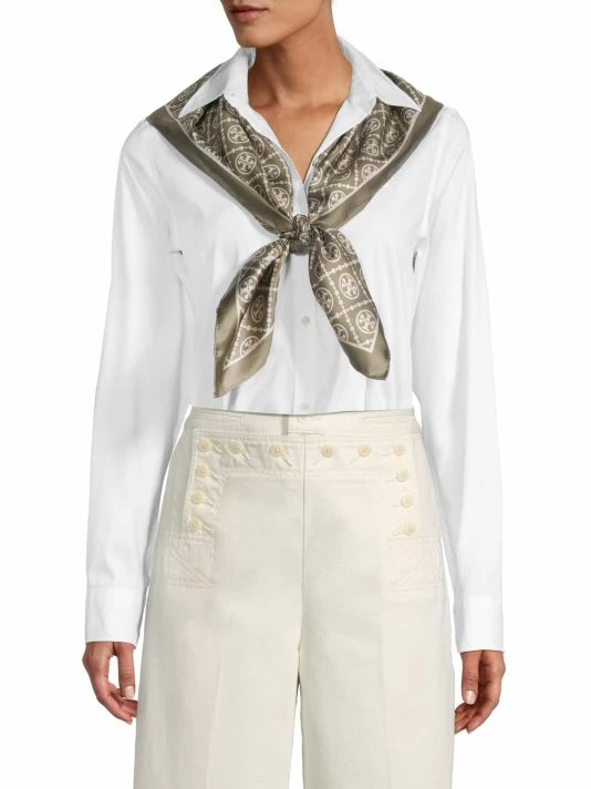 Tory Burch’s double-sided scarf is crafted in silk twill, with a contrasting T Monogram print on each side.
