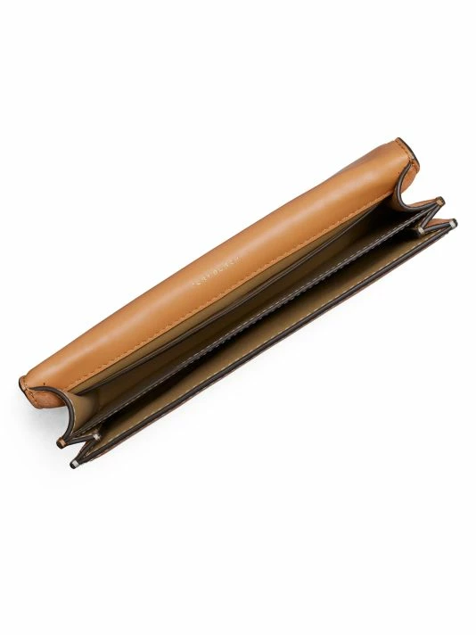 Crafted in embossed patent leather, Tory Burch’s shoulder bag has a 70’s feel, with its structured shape and sporty webbing strap.