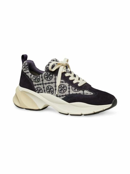 From the Good Luck Collection. Tory Burch’s trainers showcase the label’s signature T-monogram with suede panels. This pair is finished with a chunky sport sole.